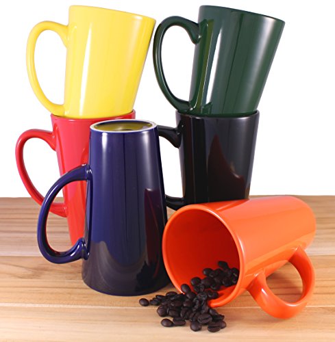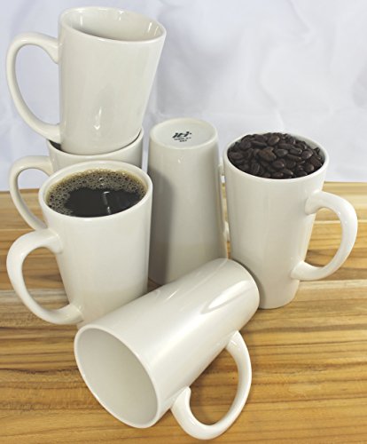 -. Feature : Set of 6 Funnel Cup style ceramic coffee mugs / 16 Ounce / Size: 3.75" Wide x 5.75" Tall / Very durable, commercial grade ceramic porcelain mugs / Used by many restaurants and food service industries - Microwave and dishwasher safe / Includes a handy MBW NW BRANDS pot / pan scraper