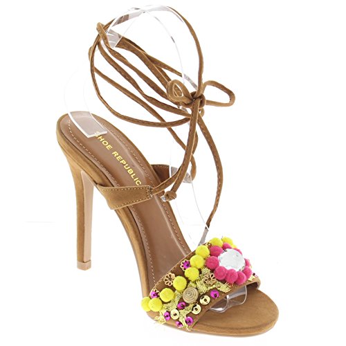 Shoe Republic Open Toe Slender Laces Stilleto Sandal Emilia