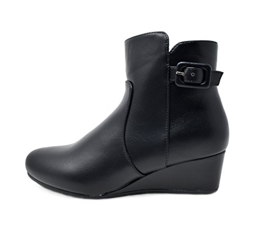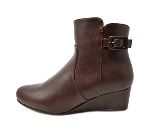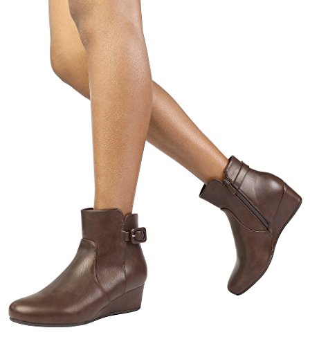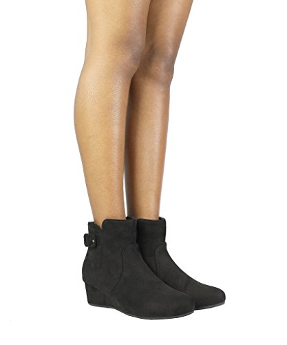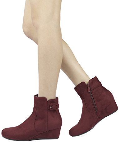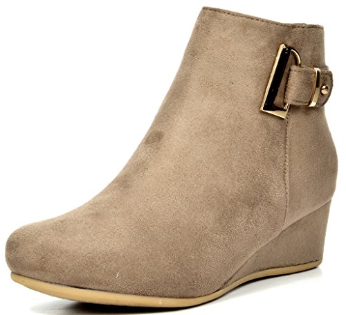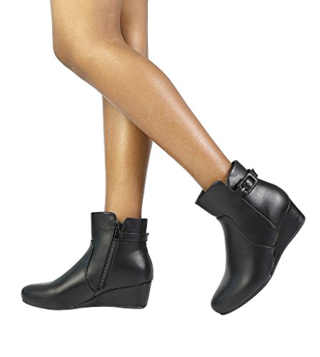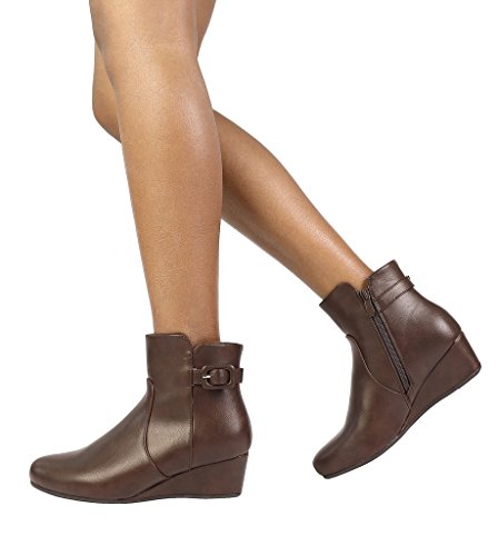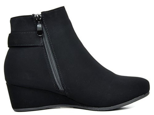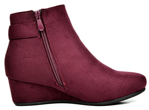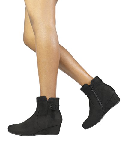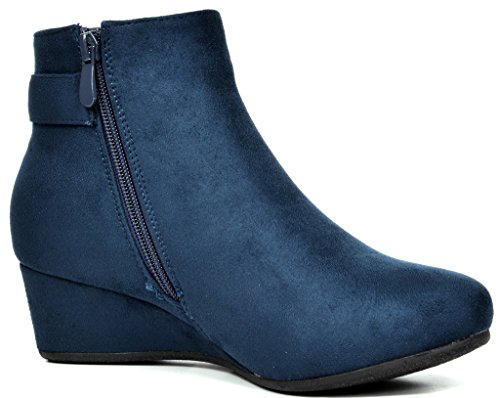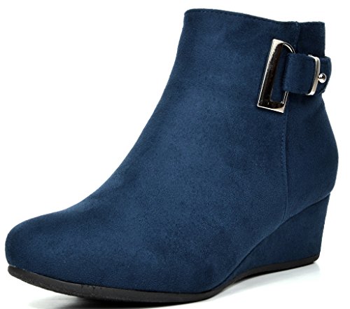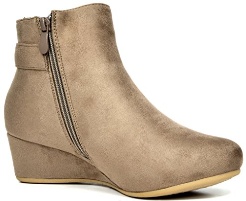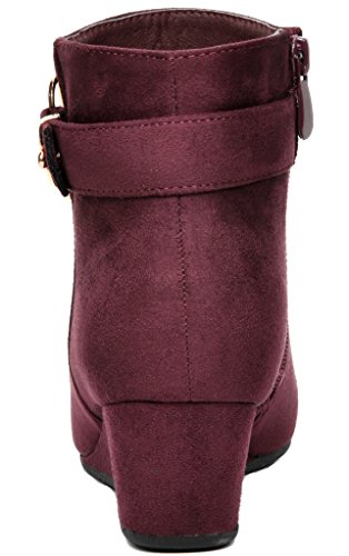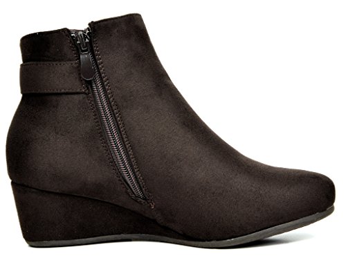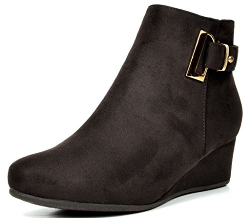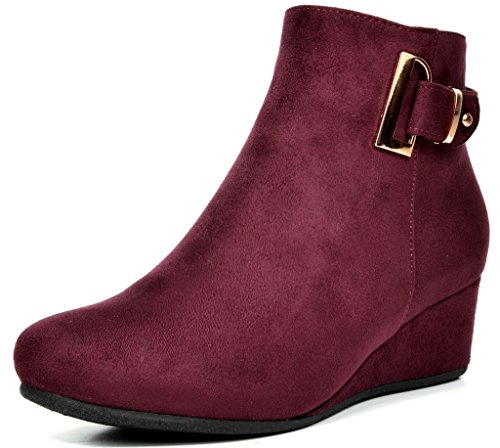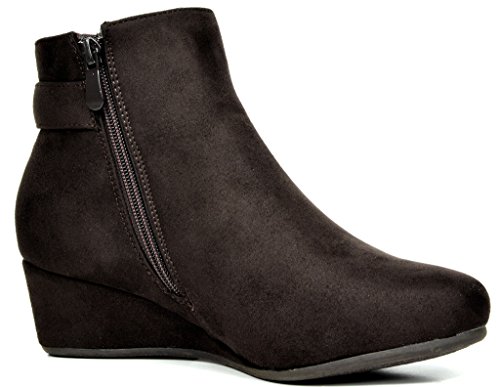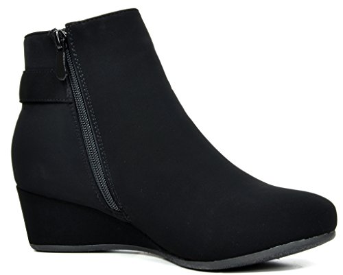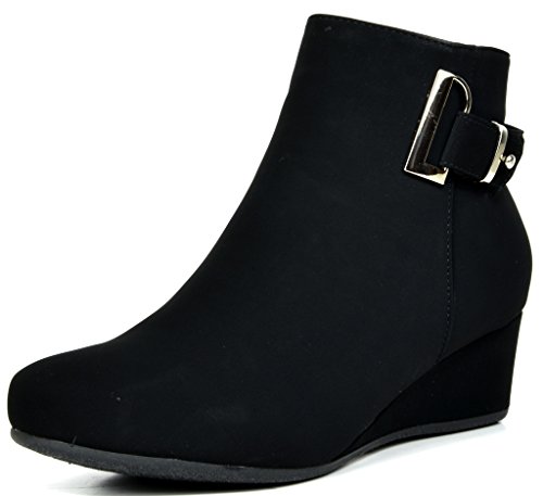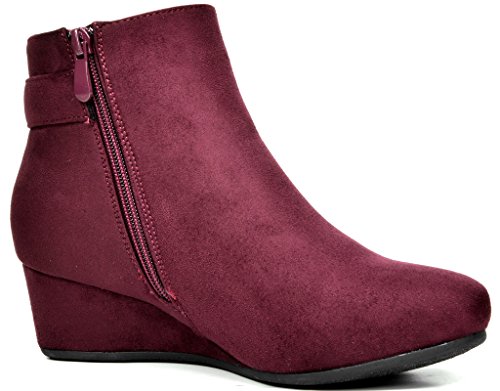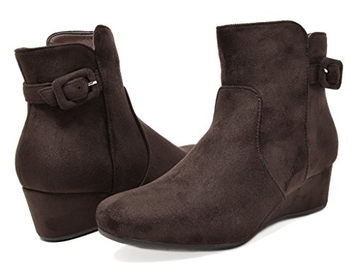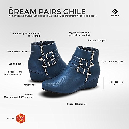 | DREAM PAIRS LANG Women's Stylish Winter Faux Fur Lining Side Zipper Low Wedge Heel Booties Shoes |