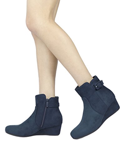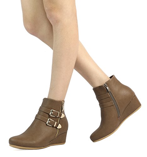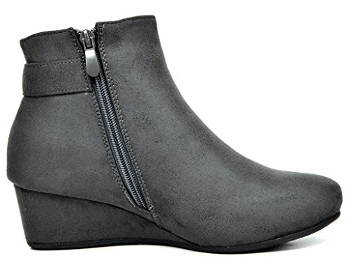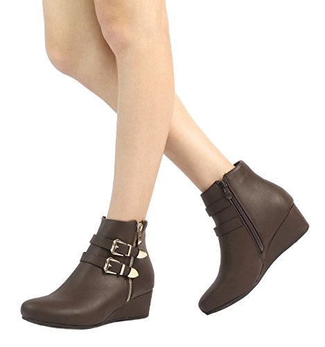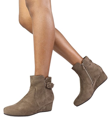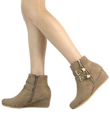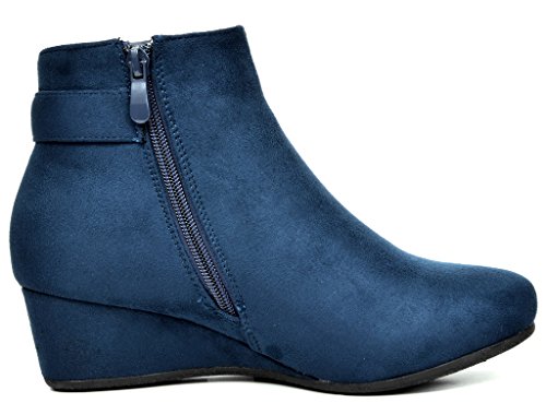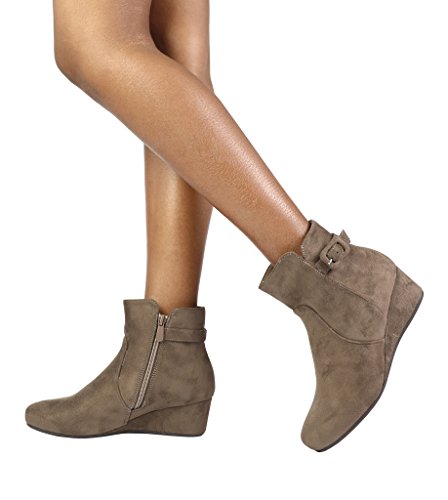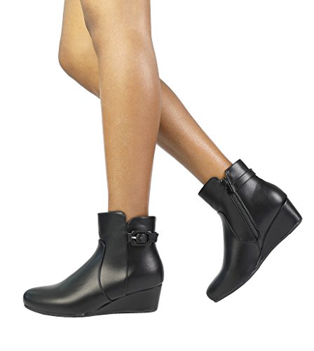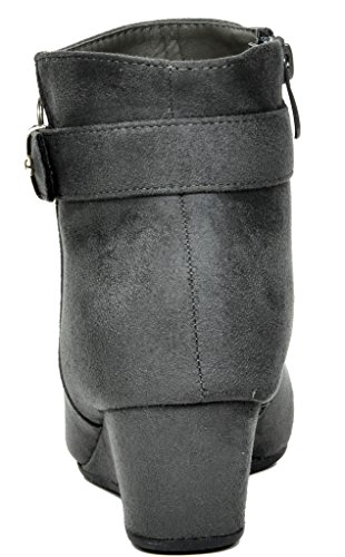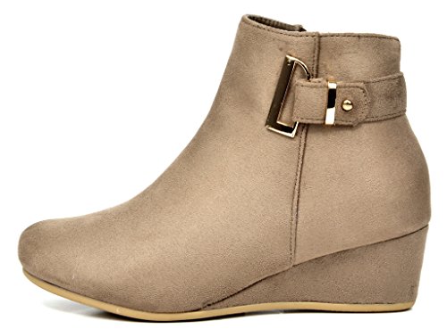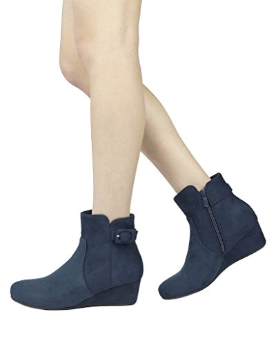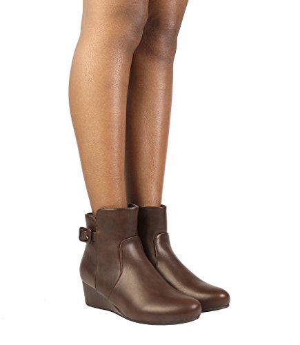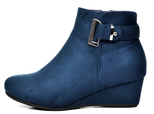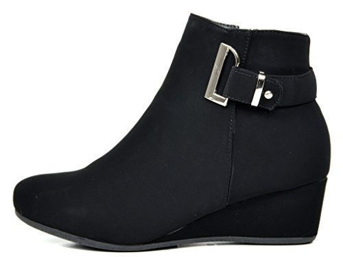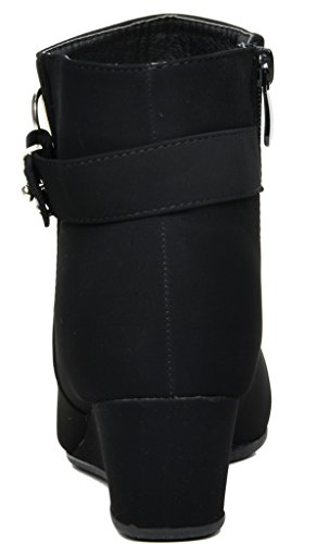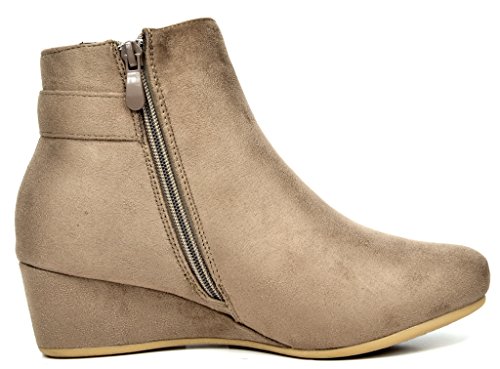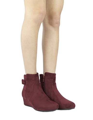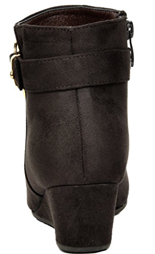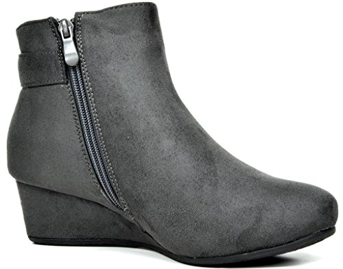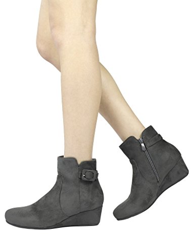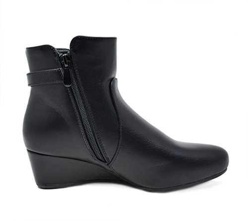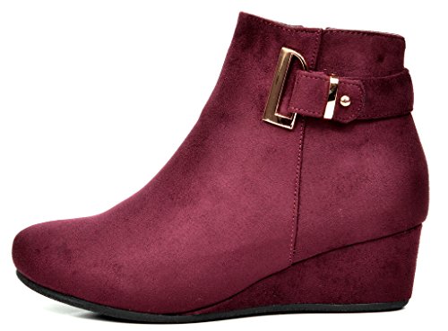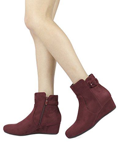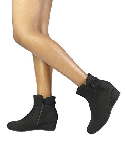 | DREAM PAIRS LANG Women's Stylish Winter Faux Fur Lining Side Zipper Low Wedge Heel Booties Shoes |