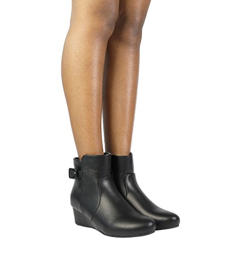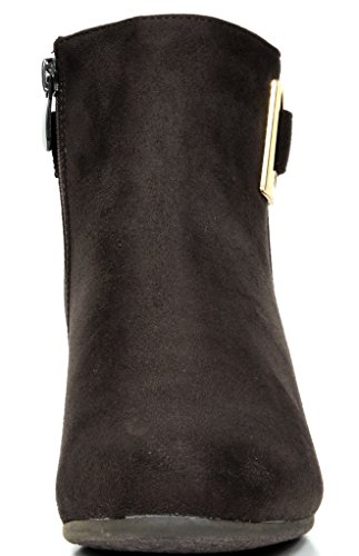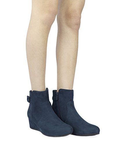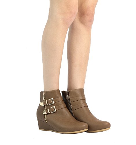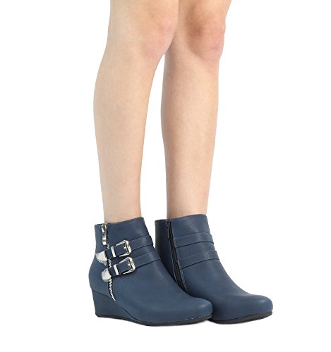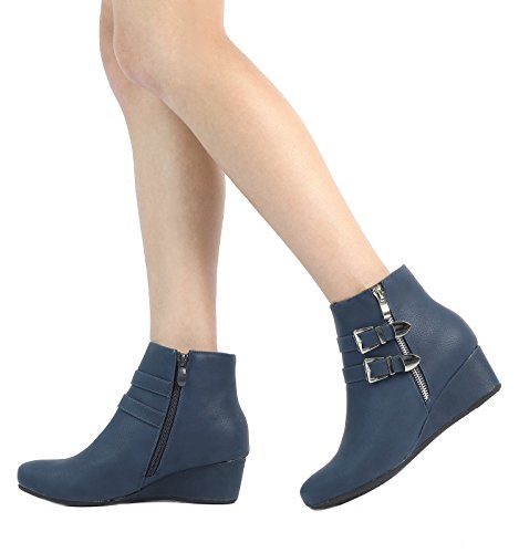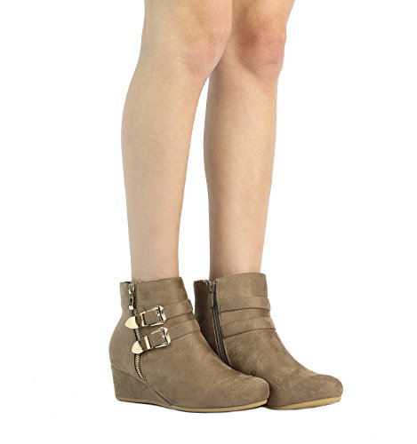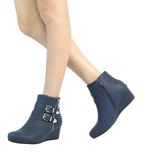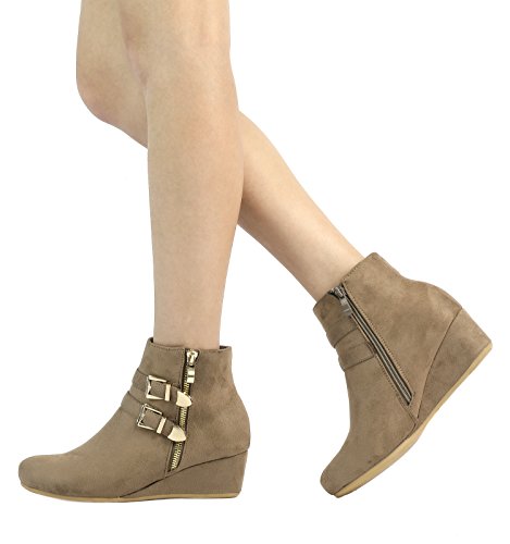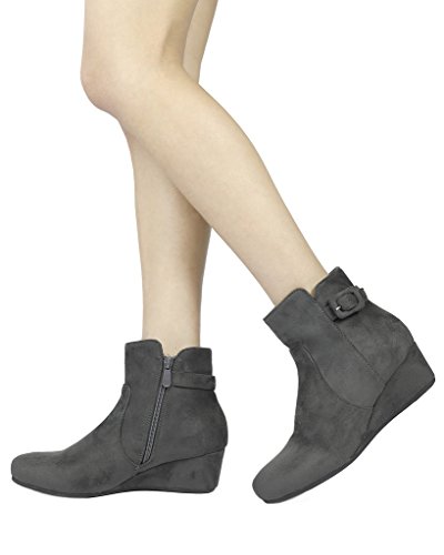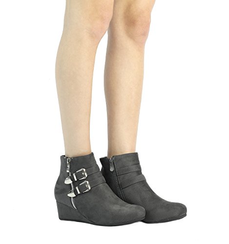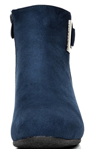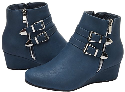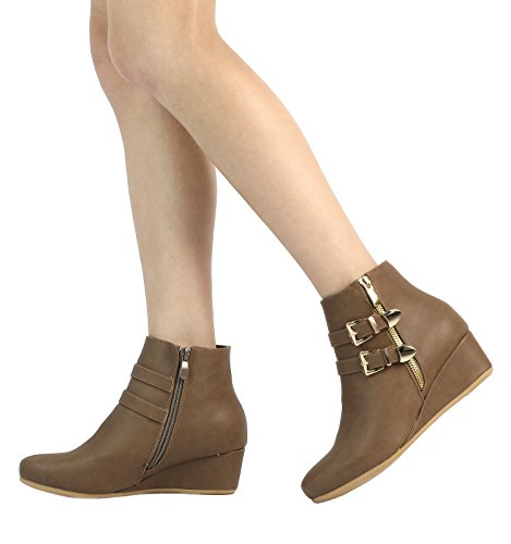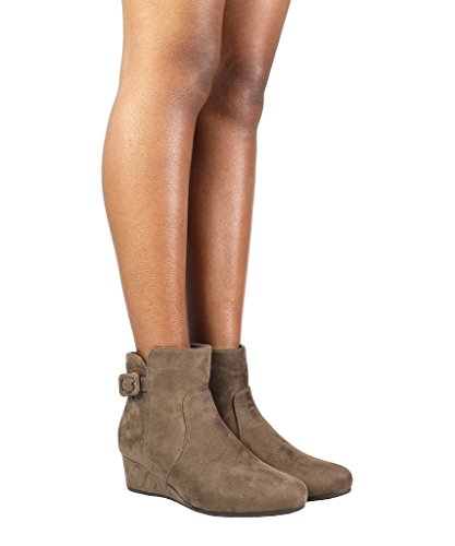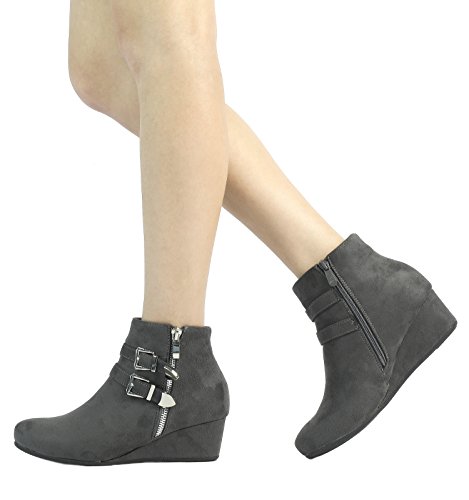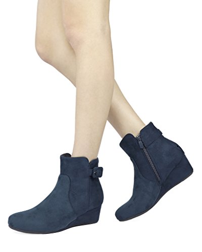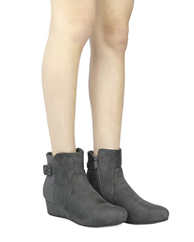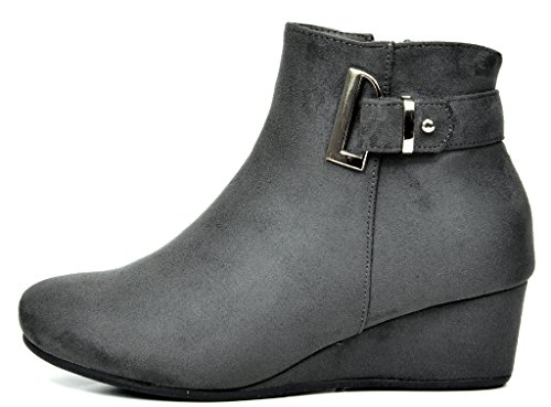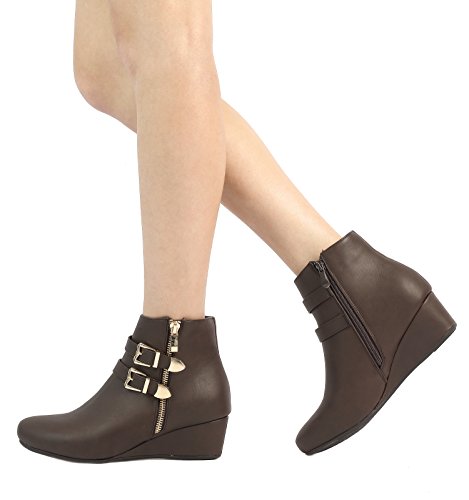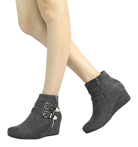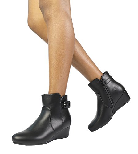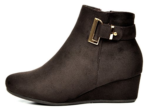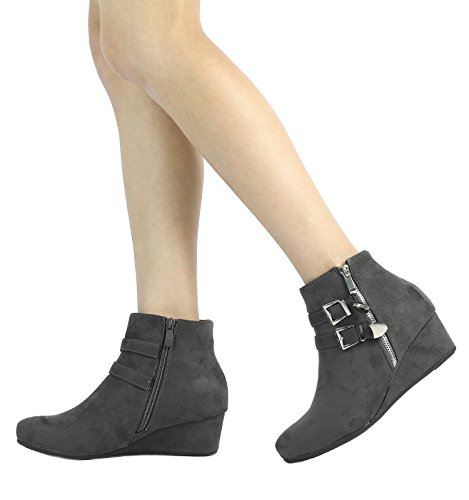 | DREAM PAIRS LANG Women's Stylish Winter Faux Fur Lining Side Zipper Low Wedge Heel Booties Shoes |