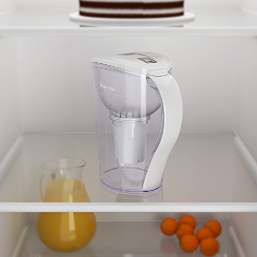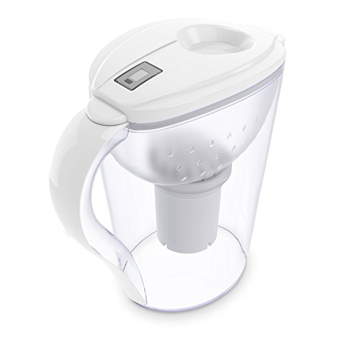 MODERN DESIGN (Improved 2017 MODEL) - Easy-to-Fill Lid System & Digital Gauge so you know when to change your filter. Anti-Block latest technology filter material compound (search B00X127CGE). PREMIUM ECO-FRIENDLY MATERIALS - BPA free, SGS Certified, FDA, TUV, RoHS, BSI, ISO 9001:2000 Member of The Water Quality Association.