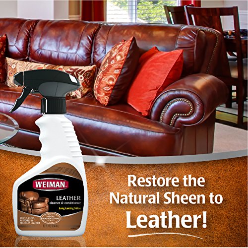Weiman Leather Cleaner is a multi-action formula that cleans, moisturizes, restores and protects leather. It contains six natural cleaners and oils that condition leather, restoring its natural suppleness and sheen.