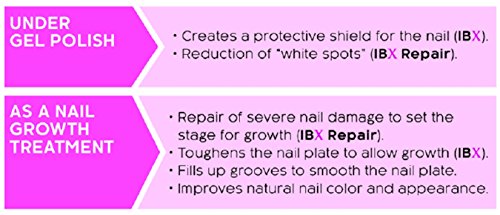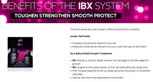IBX REPAIR: Intense treatment used to improve nail plate integrity under any Gel Polish Coating. Also used to target natural nail imperfections and weaknesses that prevent natural nails from growing long. Use in addition to IBX to treat particularly weak, thin, and damaged nails. Can be used as a complete protective shield under Gel Polish AND for specific damage repair. 100+ applications of 10 nails per .33 fl oz bottle. 36 month shelf life Under Gel Polish Step One of the Protective Shield Used prior to IBX. A full coat of IBX Repair acts as the fusion layer to begin the formation of the IPN. Helps to reduce "white spots" on the surface of the nail. Grow the Natural Nail Repairs Damage IBX Repair is applied specifically to targeted damaged areas including splits, peeling and free edge delamination. Acts like "double-sided sticky tape" to seal damaged areas together. Used prior to IBX strengthen. IBX STRENGTHEN: Penetrating toughening agent that fuses together the nail's top layers to improve nail plate integrity under any Gel Polish Coating. Also used to keep your natural nails strong so that they grow long! Use to toughen and grow natural nails, or to insure nail plate integrity under nail enhancements. Applied just like polish, LED Light curable. 60-70 applications of 10 nails per .5 fl oz bottle. 36 month shelf life IBX is the workhorse of the IBX System It completes the formation of the IPN within the nail plate. It toughens the nail plate by fusing together the upper layers, providing strength and protection. A full coat is always applied, whether for Gel Polish protection or to grow natural nails. Cured with an LED light.Feature
