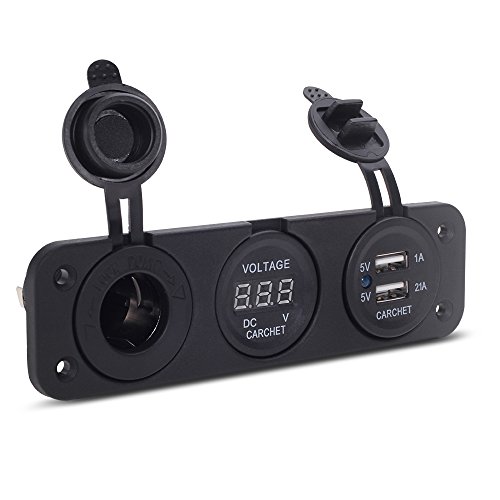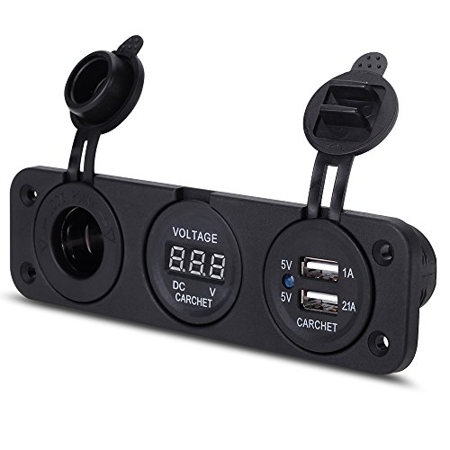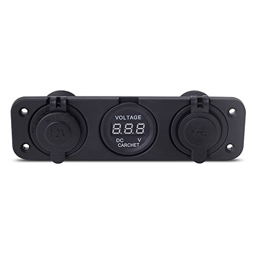 zowaysoon PJH-RS-0377 Car Digital Voltmeter Dual USB 2 Port Power Socket Three Hole Panel, Black