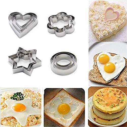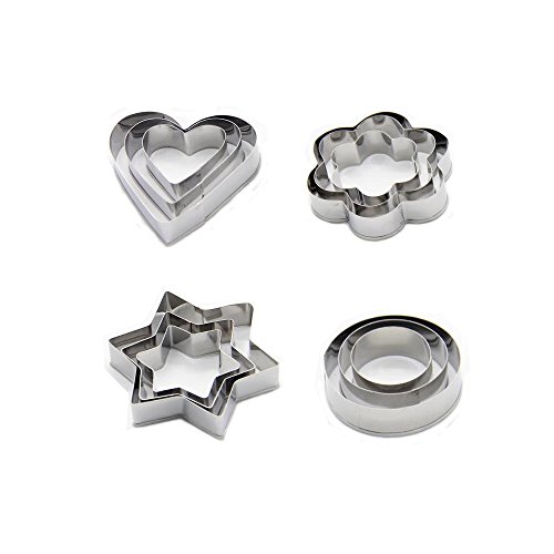 ChooseU 12 pieces / set biscuit type stainless steel cookie cutter heart flower round star shape biscuit mold cake decorative tool set DIY 2 models are available (A model)