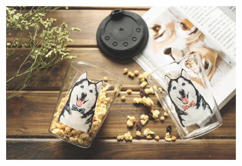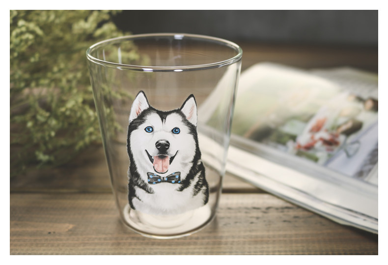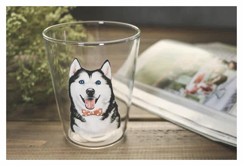 超人气ins同款玻璃杯萌宠哈士奇系列水杯创意可爱二哈牛奶麦片杯