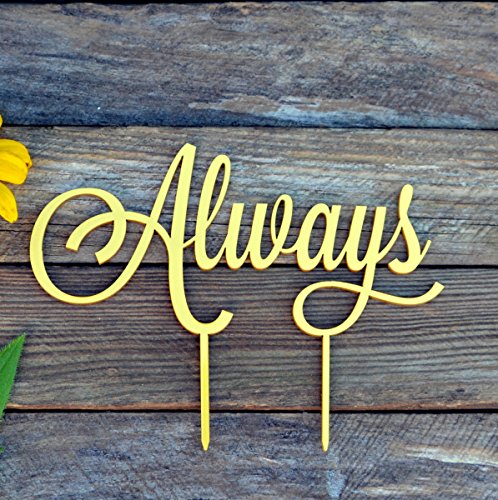 Size perfectly to fit a 5 inches top tier cake. Please measure or ask the width of the top tier of your cake to choose the right size of the cake topper.