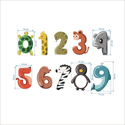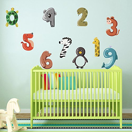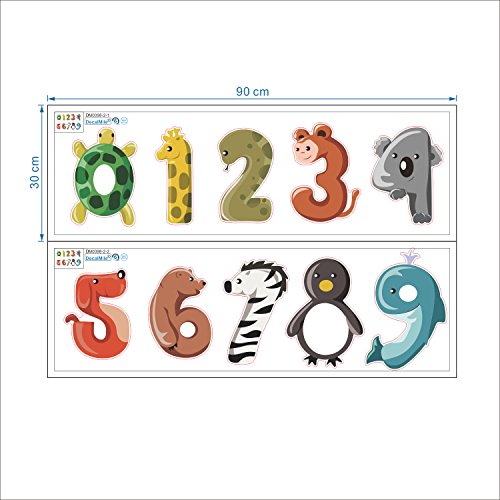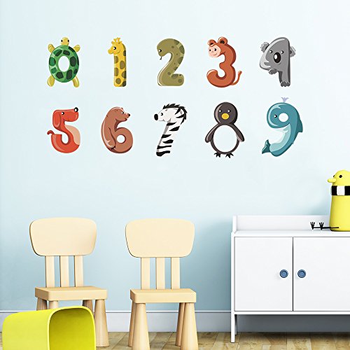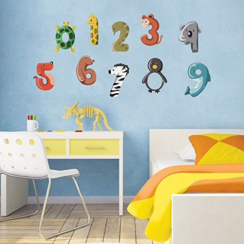 DecalMile Cute Animals Number Early Education Wall Stickers Removable DIY Wall Decals Murals For Kids Children's Room Nursery Classroom