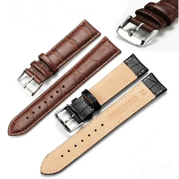 | [해외] 내구성 남성 및 여성 정품 가죽 시계 스트랩 14,16, 18,20, 22,24 미리메터 소 블랙 브라운 시계 밴드 패션 스테인레스 스틸 버클 |