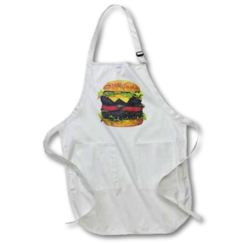 3dRose apr_6239_2 Hamburger Deluxe Medium Length Apron with Pouch Pockets, 22 by 24"
