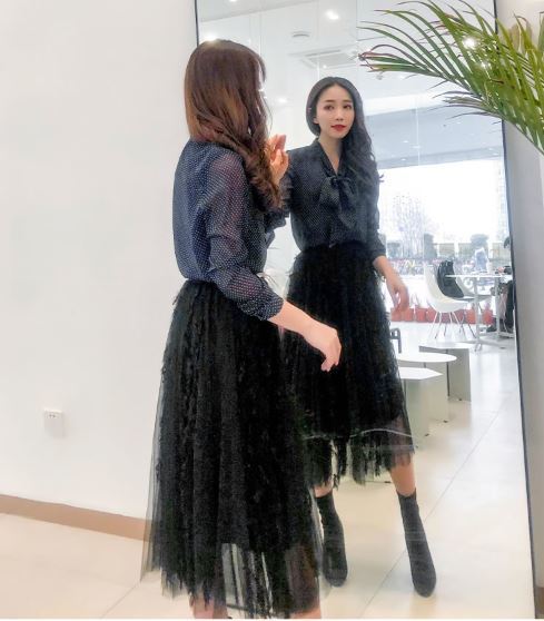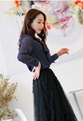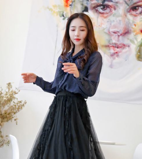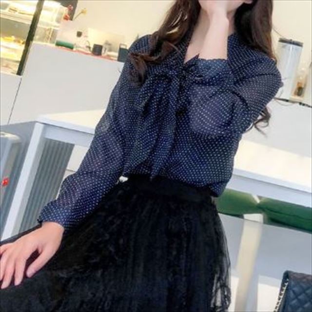 この1枚で旬顔コーデに☆定番人気のドット柄シフォンシャツのご紹介です。