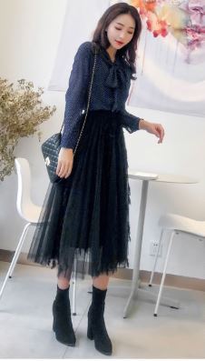 小さめのドット柄で、甘くなり過ぎない大人女子コーデににピッタリのアイテムです。