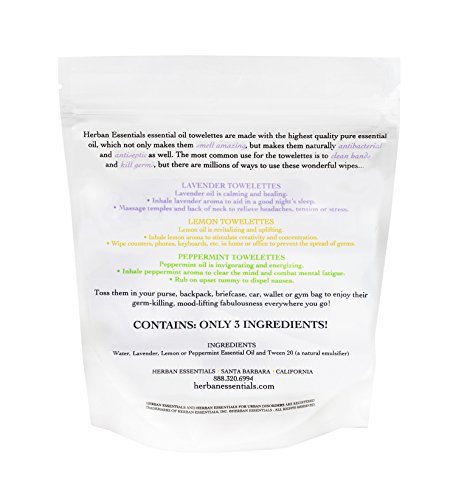 Herban Essentials Mixed Bag (Lemon, Lavender and Peppermint Essential Oil Towelettes) - 20 Count