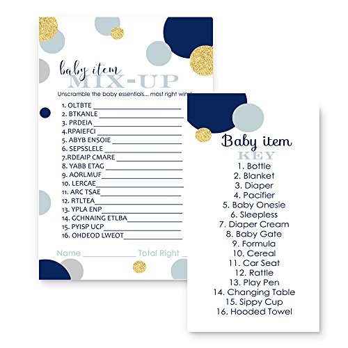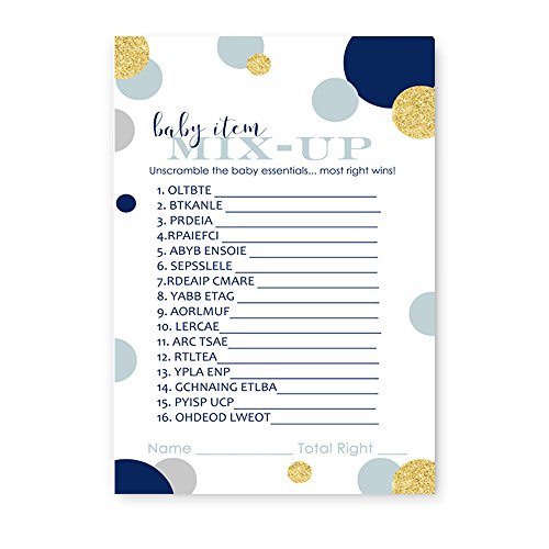 Abstract Baby Shower Game Word Scramble Navy and Gold ( 25 Pack )