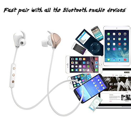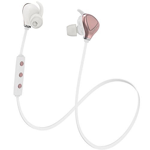 [Upgrade] InzhiRui Bluetooth Headphones, Wireless Sport Running Workout Earbuds Sweat Proof Earphones, Cordless in Ear Headset with Mic for iPhone 6 7s Plus Android Samsung Galaxy (Rose Gold)