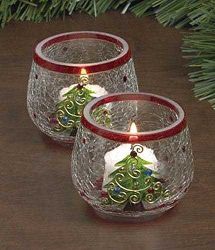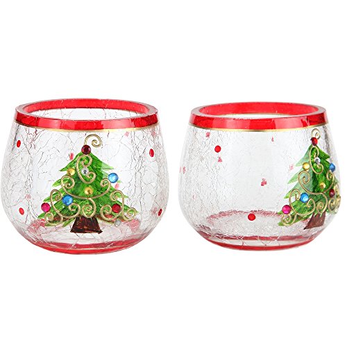 Home-X Christmas Tree Candleholders. Crackle Glass Candle Holders. Set of 2