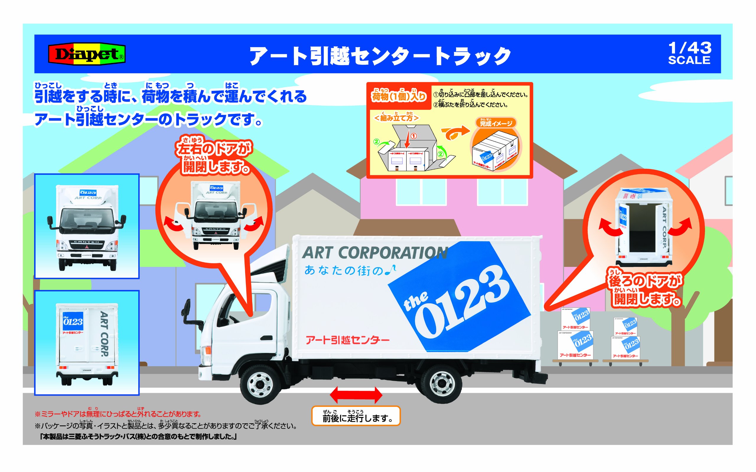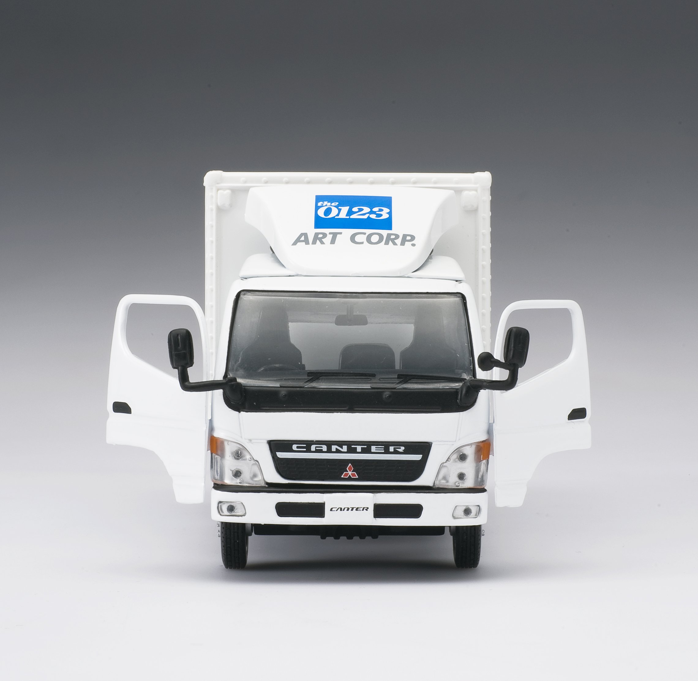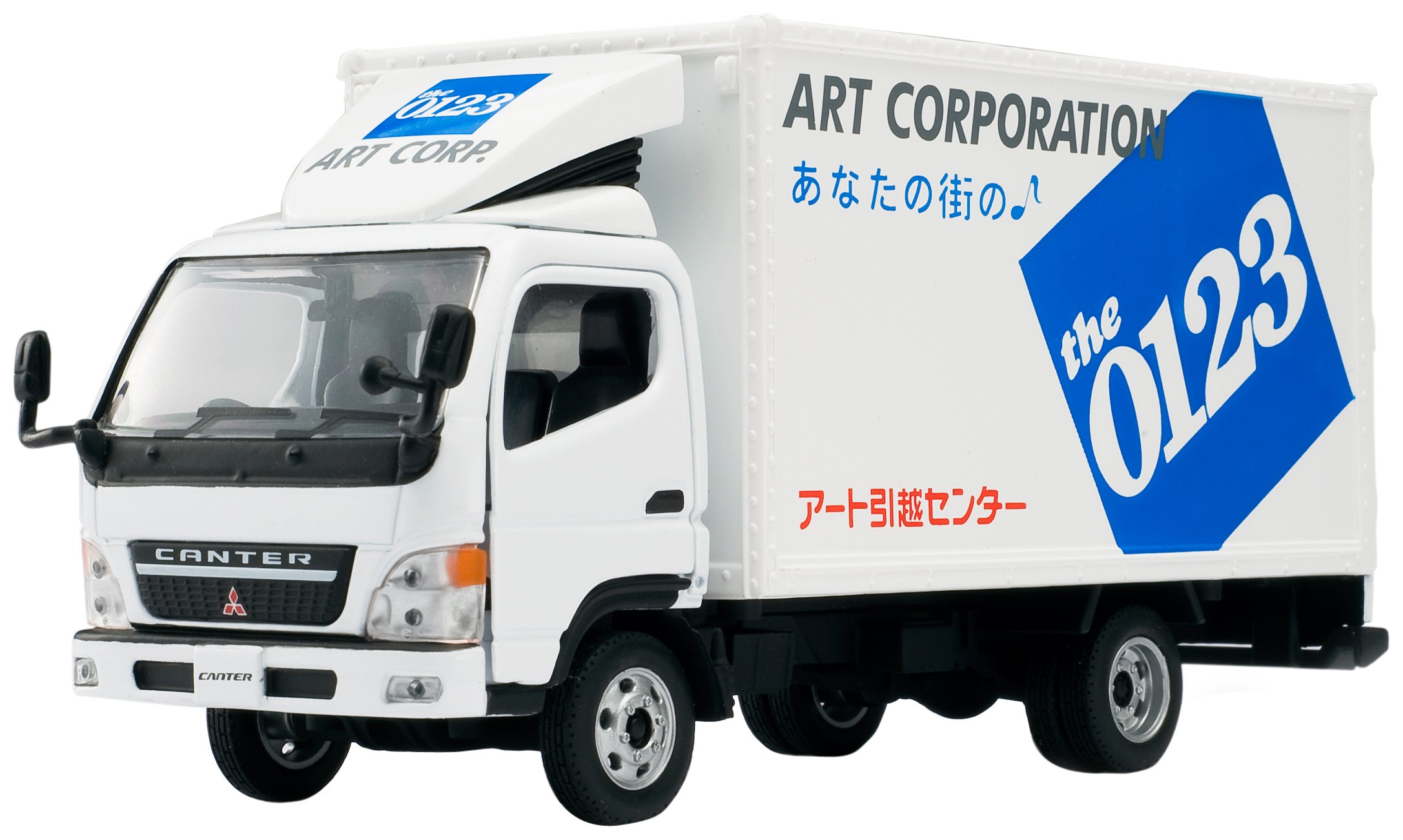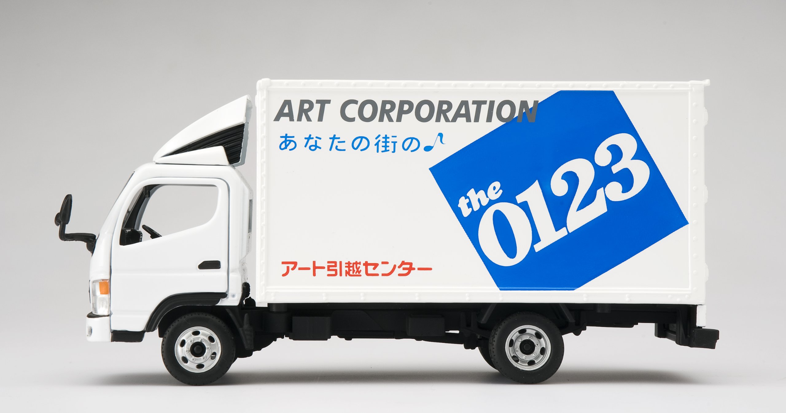 A 1/43 scale minicar modeled on the truck of the Art Moving Center.