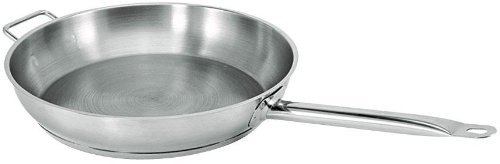 SuperSteel induction ready fry pans with helper handle are constructed of stainless steel. Frying pan is essential to every kitchen, home or professional. Its NSF-certified 18/8 stainless steel build provides excellent heat conduction and will stand up to the beating a frying pan will often endure during its regular use. Features a natural finish and can be used on induction ranges. The additional helper handle increases user ease and safety. Measures 14-1/2-inch diameter by 2-3/4-inch height.Feature