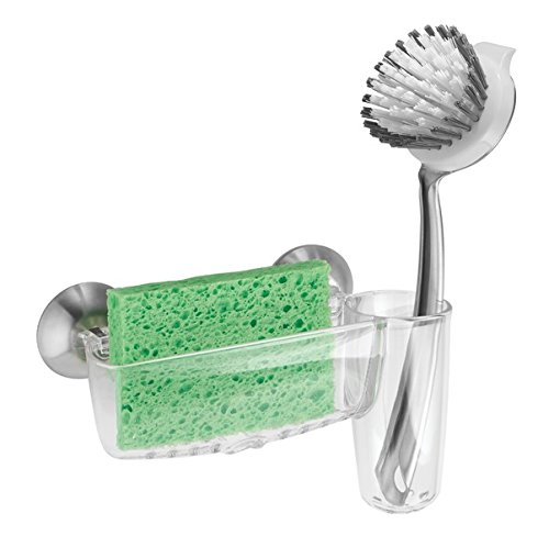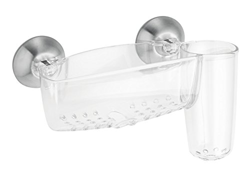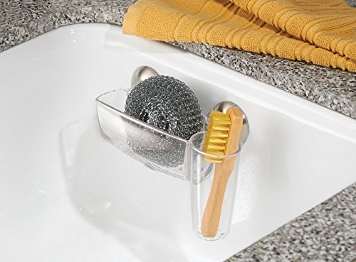mDesign Power Lock Kitchen Sink Suction Holder for Sponges, Scrub Brushes, Soap - Clear/Brushed Stainless Steel