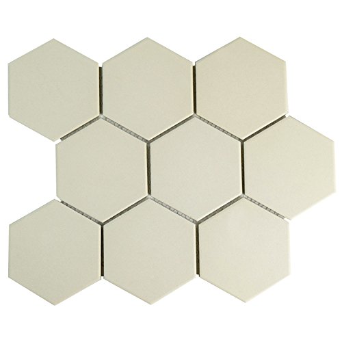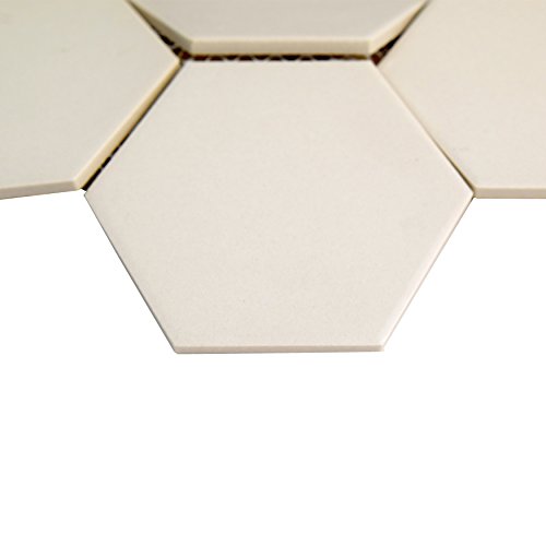 SomerTile FXLG4HWT Antique Super Hex Unglazed Porcelain Mosaic Floor and Wall Tile, 10" x 11.38", Antique White, 10 Piece