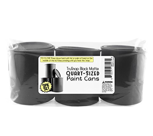 Black Plastic Paint Cans (3-Pack); Quart Size Cans for Paints & Varnishes or Crafts & Gifts