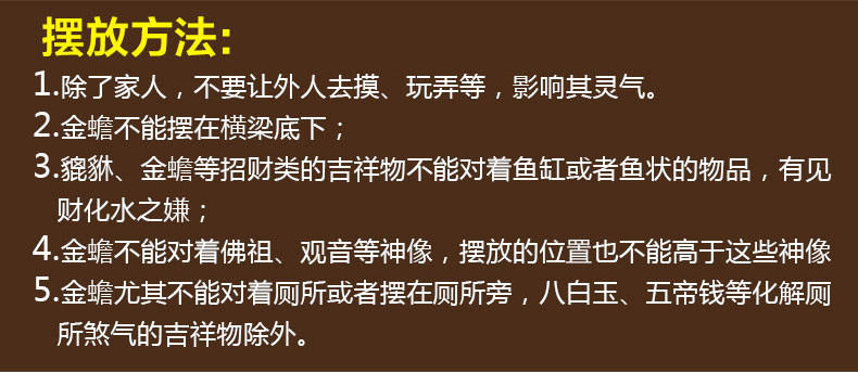 Toad vomit money is Lucky's mascot, three feet, back of the Big Dipper, the money title mouth, carrying coins. The home of the three-legged toad, the treasure of all enrichment, Jhainei placed toad, have sucked money, spit wealth, accumulated wealth, the role of the town of wealth, is a family business can Cai Yun mascot.?