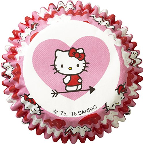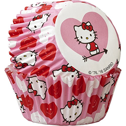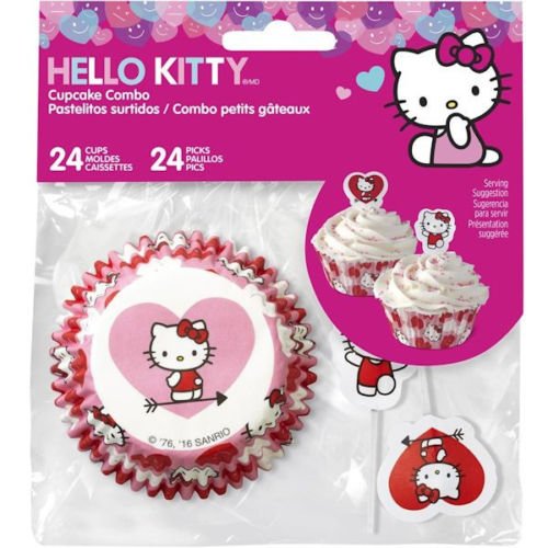 Complete your party theme using the Hello Kitty Cupcake Combo Pack to bake and decorate your treats. Pink baking cups feature red and white hearts with a Hello Kitty Pattern. Bottom of cup features heart icon with Hello Kitty standing on cupid’s bow. Add the perfect finishing touch using Hello Kitty cupcake toppers in two designs (heart and Hello Kitty). Includes 24—2 in. (5 cm) standard size baking cups and cupcake toppers.Feature