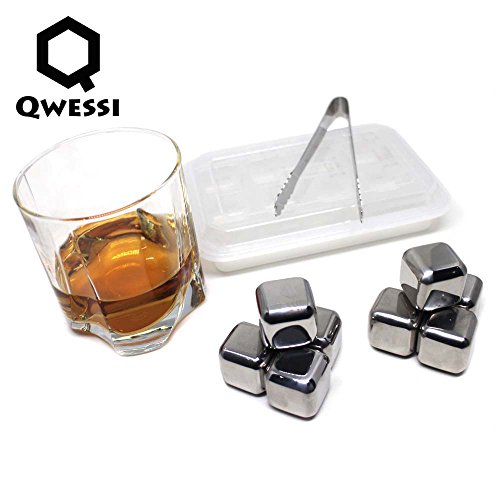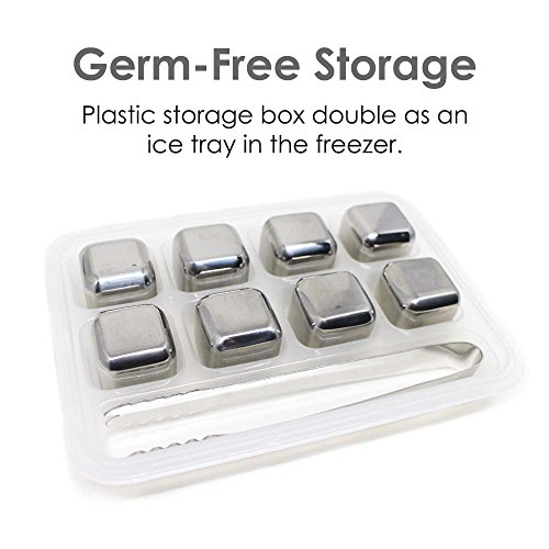 Qwessi Set of 8 with Tongs Stainless Steel Whiskey Stones Reusable Ice Cubes in Plastic Storage Trays