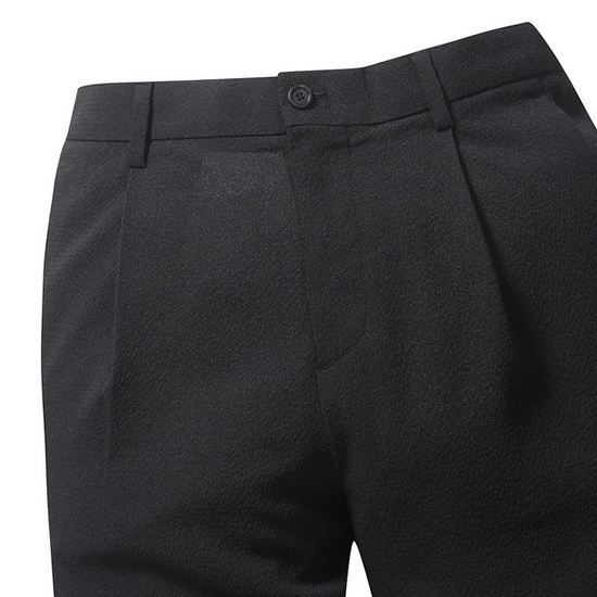 - 솔리드 컬러에 미니멀한 남성 팬츠.