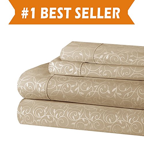 //BEST SELLER// Elegant Comfort Luxurious Silky Soft Coziest 4-Piece Bed Sheet Set Beautiful Design Wrinkle, Taupe, King