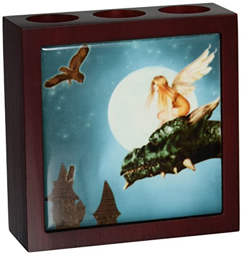 3dRose ph_25967_1 Fairy Dragon Fantasy with Moon and Owls Tile Pen Holder, 5-Inch