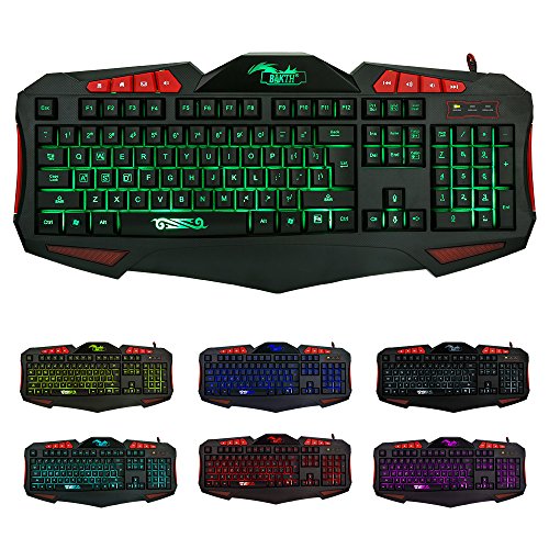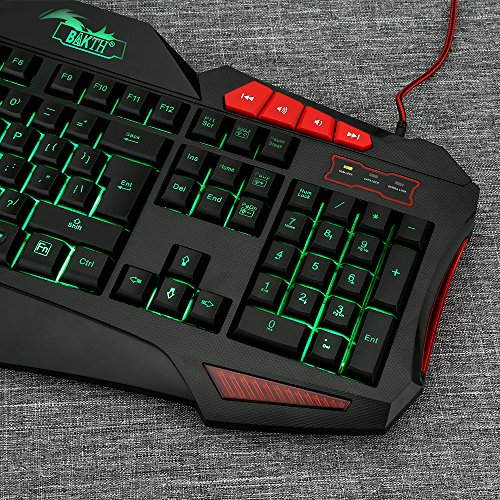 BAKTH Unique Premium Adjustable 7 Color Illuminated LED Backlight Wired Multimedia USB Gaming Keyboard and Mouse Set Combos Bundle + Customized Large Mouse Mat