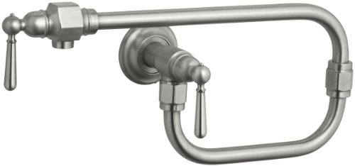 KOHLER K-7322-4-BS HiRise Wall-Mount Kitchen Pot Filler, Brushed Stainless