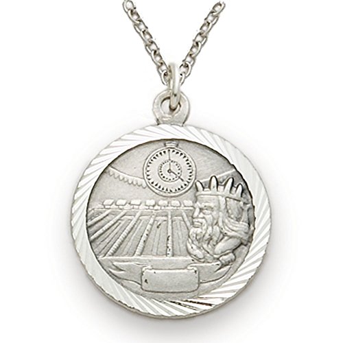 -. Feature : Medal - Sterling Silver - 3/4 Inch / Chain - 20 Inch Stainless Steel with Rhodium Finish - Lobster Claw Clasp / Comes in Jewelry Gift Box