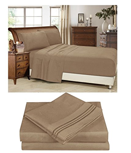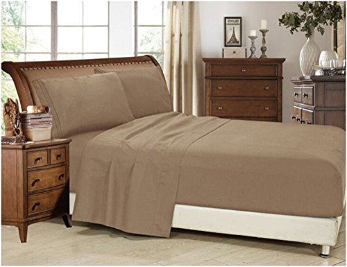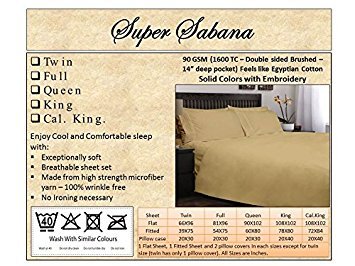 Super Sabanas Solid Color Bed Sheets with Embroidery, 90 GSM (1600 TC - Double Sided Brushed - 14" Deep Pocket) Feels like Egyptian Cotton - Exceptionally Soft (Double, LIGHT BROWN)