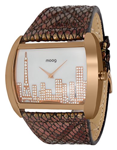Moog Paris Skyline Women's Watch with White Dial, Black & Rose Gold Genuine Leather Strap & Swarovski Elements - M41882-002