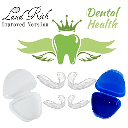 Studio : Land Rich Publisher : Land Rich Binding : Misc. Product Description Land Rich Mouth guard is BPA, PVC and Latex FREE, that cover either the top or bottom set of teeth. The guard cushions your teeth from the force of clenching and prevents the molars from grinding together. This not only protects your teeth but also allows your loved ones to sleep soundly. It is important to keep your teeth safe while ensuring you and your spouse get a good night's sleep. Our mouth guard is designed to cover all the teeth and to cushion them against falls and blows to the chin. With its hard outer layers and soft inner linings, you will experience a comfortable wear against the teeth and gums. You can shape the product yourself by using hot water to soften it and then mold it around the teeth using the fingers until you get a close-fitting guard that will stay firmly in place all night long. Benefits include: ? Latex material BPA-free ? FDA approved ? Moldable design provides a custom Fit ? Easy to Fit and Remove ? Can be used as teeth whitening trays and athletic mouth guards ? Dentist approved ? Fits upper and lower teeth Set Includes: ? 4 Dental Guards (2 Size)? Full detailed instructions ? 2 Free hygienic traveling case do not hesitate to add the shopping cart! ! ! 0
