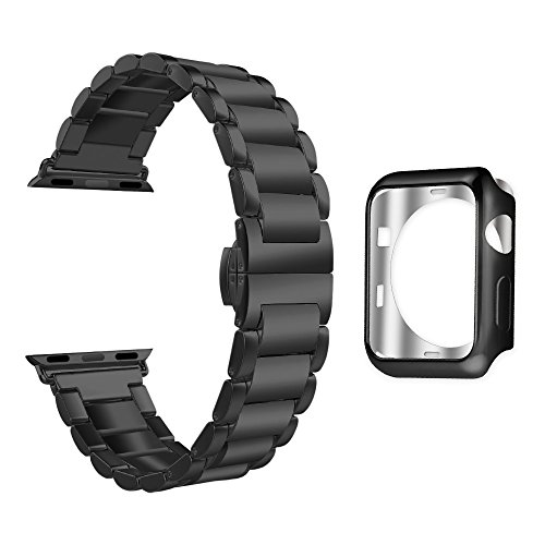 Additional case for Apple Watch. Besides a stainless steel band, there comes an apple watch case as bonus. It matches the color of the band and is able to prevent your watch from being scratched