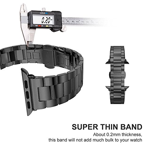 Apple Watch Band 42mm, UMTELE Super Slim Stainless Steel Band Metal Strap with Butterfly Clasp for Apple Watch Series 1, Series 2, Black