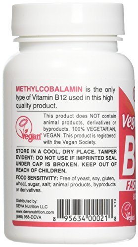 Vitamin B12 is a water-soluble vitamin that is stored in the liver. It is an especially important vitamin for maintaining healthy nerve cells and it aids in the production of DNA and RNA. In combination with folic acid and vitamin B6 vitamin B12 may serve to control homocysteine levels. DEVA Sublingual Vitamin B-12 contains 100% Daily Value of Folic Acid and Vitamin B-6.Feature