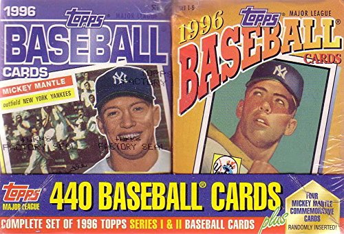 - This is the 1996 Topps Baseball Factory Sealed set which includes the 440 regular issue cards plus 4 Bonus Mickey Mantle Commemorative cards. This particular version is referred to as the "Cereal Box" version as the cards are packed in 4 "Cereal Boxes" that depict Mickey Mantle in different poses.