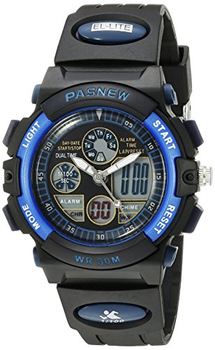 -. Binding : Watch -. Brand : PASNEW -. Department : Unisex-child -. EAN : 0634182999311 -. Feature : Japanese High quality movement with rubber band / Comfortable and Easy to wear. Fit for wrist : 130-180 mm / Product Length: 220 mm, Case size: 38 * 38 mm, thickness : 15 mm. / Waterproof 30M. 3ATM water resistant for swimming (not for diving and do not press button under water.) / Independent dual display: digital and analog. Alarm clock function, Stop watch function. Back light function,12H/24H time format -. Label : PASNEW -. Manufacturer : PASNEW -. Model : YQ-0006BL -. MPN : YQ -. PackageQuantity : 1 -. PartNumber : YQ -. ProductGroup : Watch -. ProductTypeName : WATCH -. Publisher : PASNEW -. Studio : PASNEW -. Title : PASNEW Boys Girls Waterproof Sport Digital Watch Dual Time Display - Blue -. UPC : 634182999311