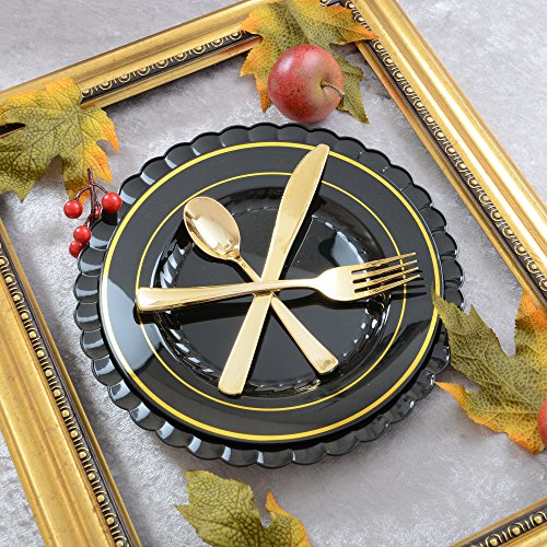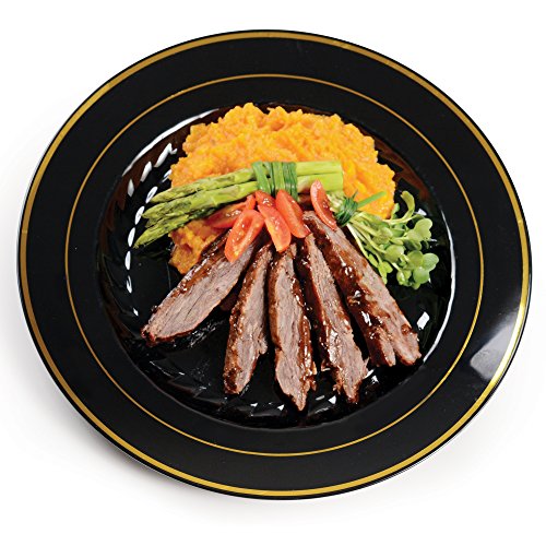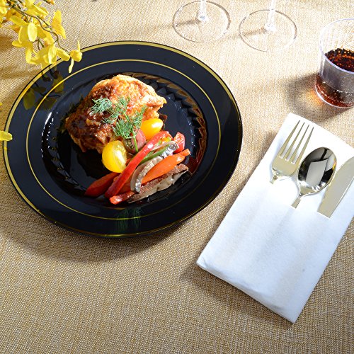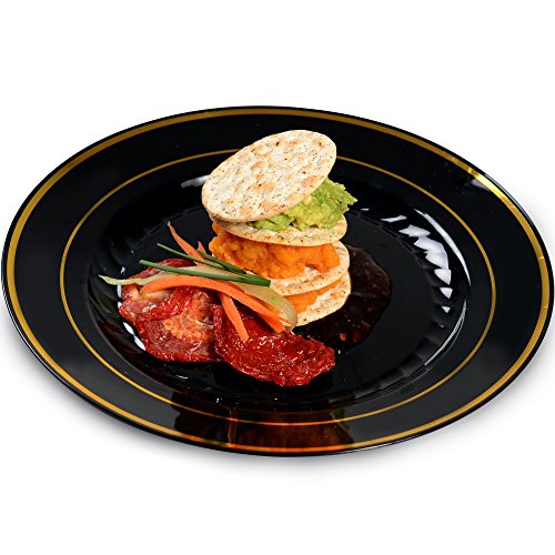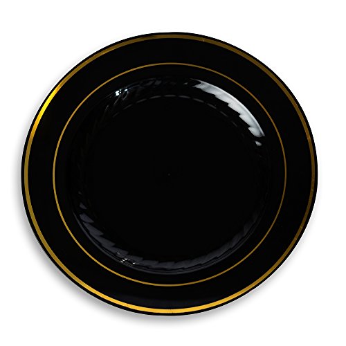 Fineline Settings Silver Splendor Black With Gold Round China-Like 10" Plate 120 Pieces