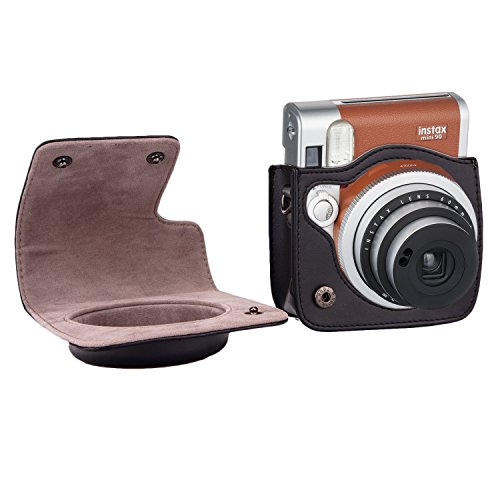 Sunmns Compact System PU Leather Protective Case Bag Cover with Strap for Fujifilm Instax Mini 90 Instant Film Camera, Black