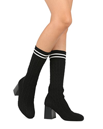 Product Description These cozy boots are made with a knitted upper, round toe and cable sweater texture. Also made with a single sole, block heel and easy to pull up design. 0