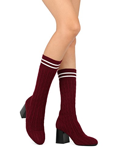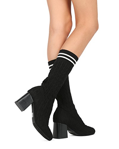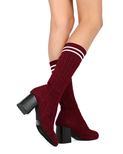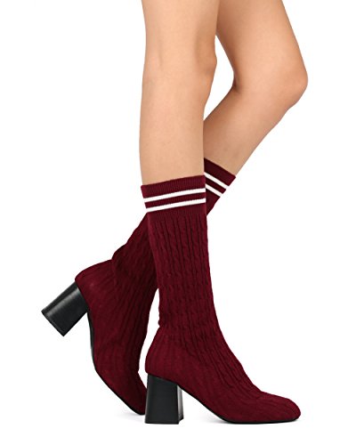 (Alrisco)/Women's/Boots/DIRECT FROM USA/Alrisco Women Knitted Sweater Mid-Calf Block Heel Stocking Boot - HF22 By Wild Diva Collection