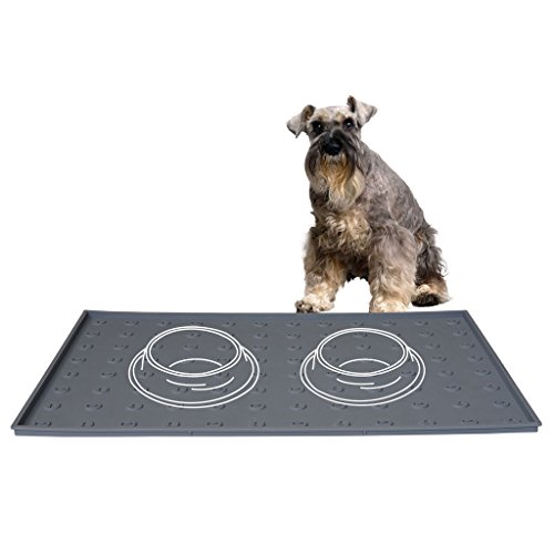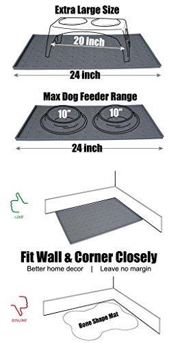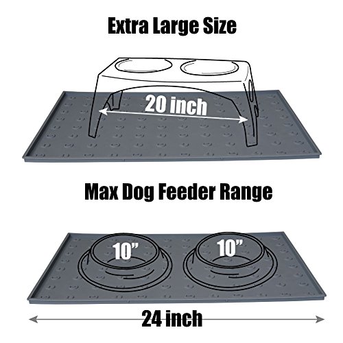 -. Feature : PROTECT: your wooden floor will say thank you. higher edge design trap spilling food & liquid onside, no more sweeping, keep floor dry. / ONE SIZE FOR ALL: 24 x 16 inches mat, fits for 4"-12" dog or cat bowl, elevated pet feeder, pet water fountain and other feeder. small puppies or big dogs? it's not a problem. / FOOD SAFE: 100% food grade silicon, non-toxic,, non-allergenic, unique design bump surface, special care for elder pets. / HEAVY DUTY: non-slip grip under mat, pet feeding station stay in place. / WORRY FREE: guaranteed 100% satisfaction, plus 30 days return policy.
