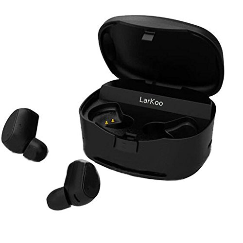 LarKoo Mini Wireless Double Twins In-ear Earbuds Headphones with Charging Box Noise Mic Cancelling Sweatproof Bluetooth Earphones Headset for iPhone iPad and Other Smartphones HV-316T(Black) (Black)