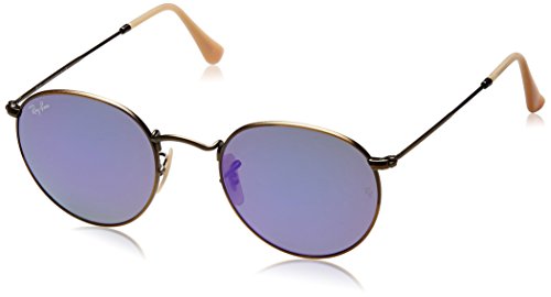 Ray-Ban ROUND METAL - BRUSHED BRONZE DEMI SHIN Frame MIRROR VIOLET Lenses 50mm Non-Polarized